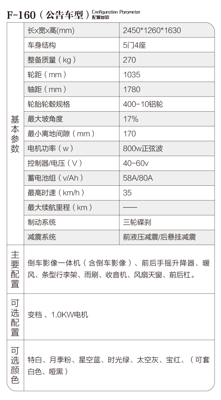 山東飛科電動(dòng)車(chē)有限公司是一家專(zhuān)業(yè)打造電動(dòng)乘用車(chē)的高新技術(shù)企業(yè)。福盛隆牌電動(dòng)車(chē)為公司主打產(chǎn)品,本公司設(shè)備精良,工藝 ,質(zhì)量管理體系完善,檢測(cè)設(shè)備齊全。設(shè)備方面:沖壓焊接流水線(xiàn)、全自動(dòng)陰極電泳線(xiàn)、德國(guó)VU光固化烤漆流水線(xiàn)、總裝流水線(xiàn)、檢測(cè)線(xiàn)一應(yīng)俱全。