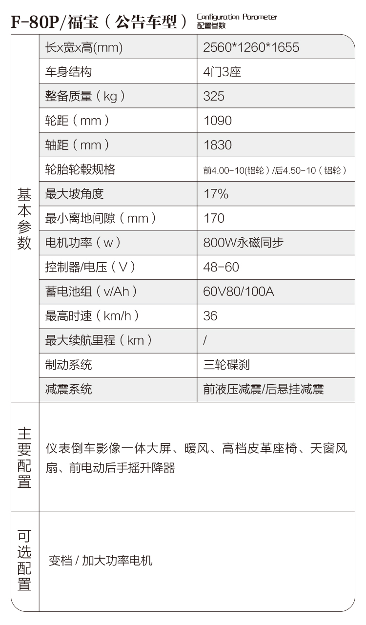 1. 山東飛科電動(dòng)車有限公司是一家專業(yè)打造電動(dòng)乘用車的高新技術(shù)企業(yè)。福盛隆牌電動(dòng)車為公司主打產(chǎn)品,本公司設(shè)備精良,工藝 ,質(zhì)量管理體系完善,檢測(cè)設(shè)備齊全。設(shè)備方面:沖壓焊接流水線、全自動(dòng)陰極電泳線、德國(guó)VU光固化烤漆流水線、總裝流水線、檢測(cè)線一應(yīng)俱全。